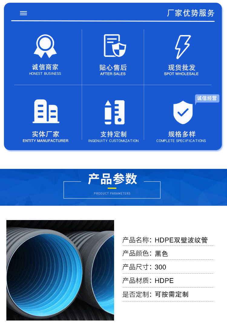 以上信息僅供參考,如果需要更多詳細(xì)信息,可以咨詢HDPE雙壁波紋管生產(chǎn)商或者賣家。